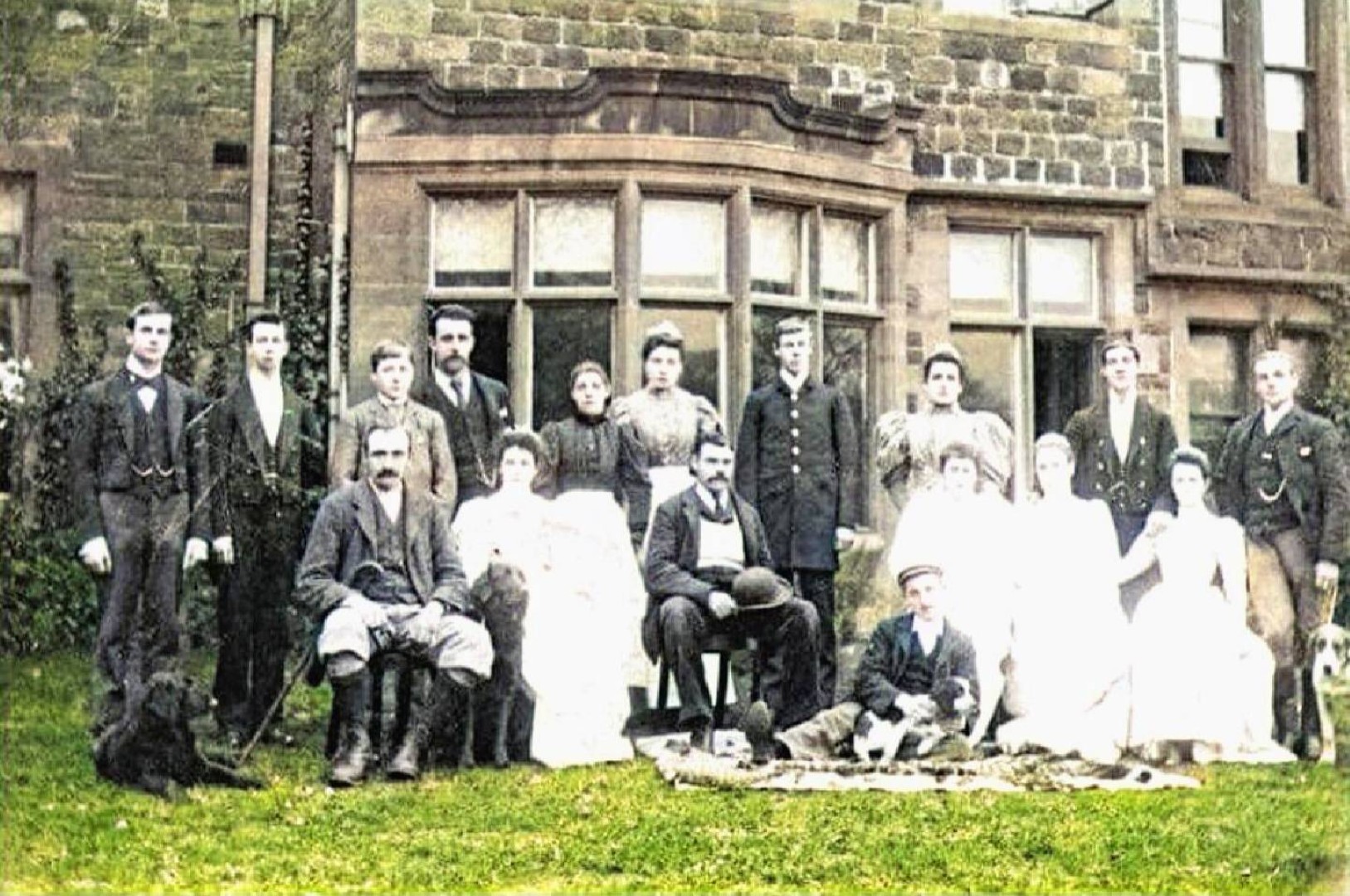 Netherhall people God Bless The Happy Pair festooned over the entrance